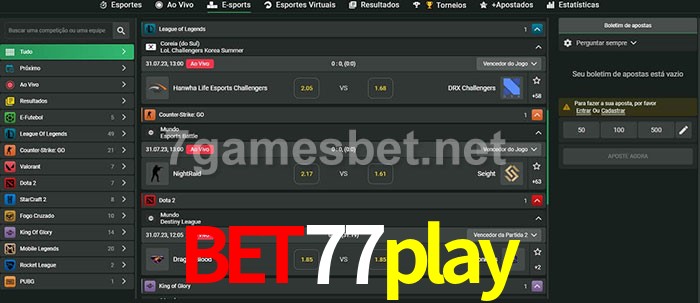 A aposta bet77play oferece aos jogadores a experiência mais conveniente de apostas em eSports!